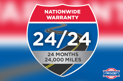Our Warranty program covers most parts and labor for…24 months or 24,000 miles / 38,000 kilometers, whichever comes first when traveling more than 25 miles / 40 kilometers from the original TECH-NET PROFESSIONAL AUTO SERVICE® repair facility.